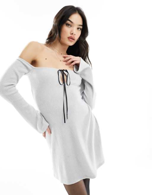ASOS DESIGN brushed off the shoulder mini dress in grey