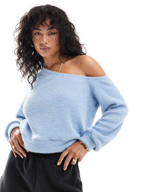 ASOS DESIGN brushed one shoulder slouchy sweatshirt in baby blue