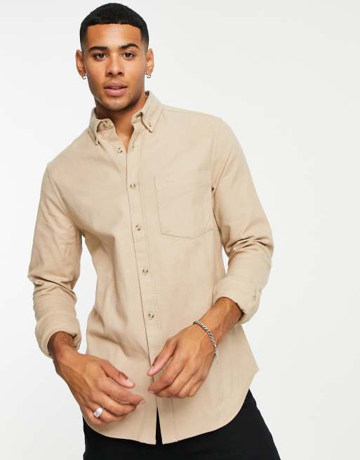 ASOS DESIGN brushed oxford shirt in neutral