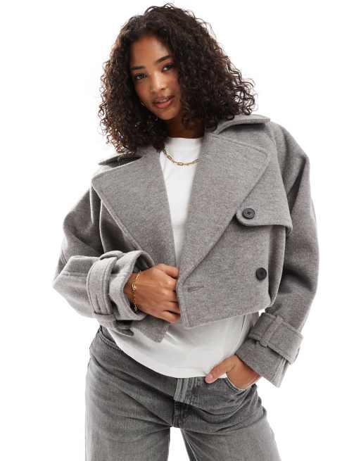 ASOS DESIGN bubble hem formal cropped trench coat in grey marl