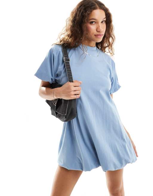 ASOS DESIGN bubble hem mini dress in denim blue