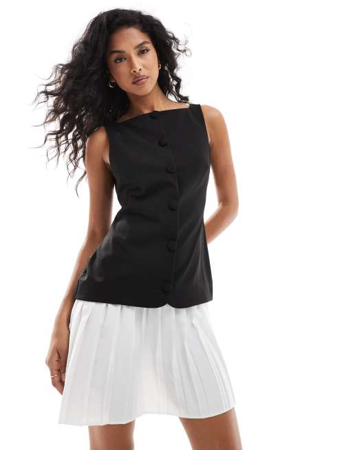 ASOS DESIGN button down pleated skirt mini dress in mono