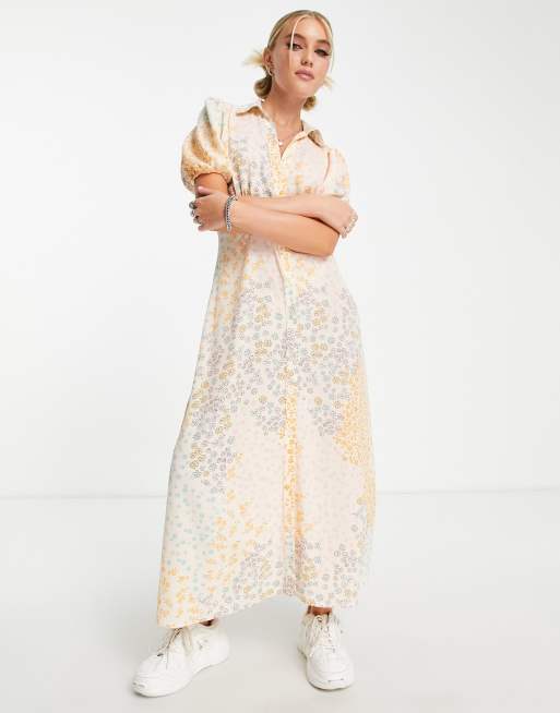 ASOS DESIGN button front midi shirt tea dress in mix scale floral print