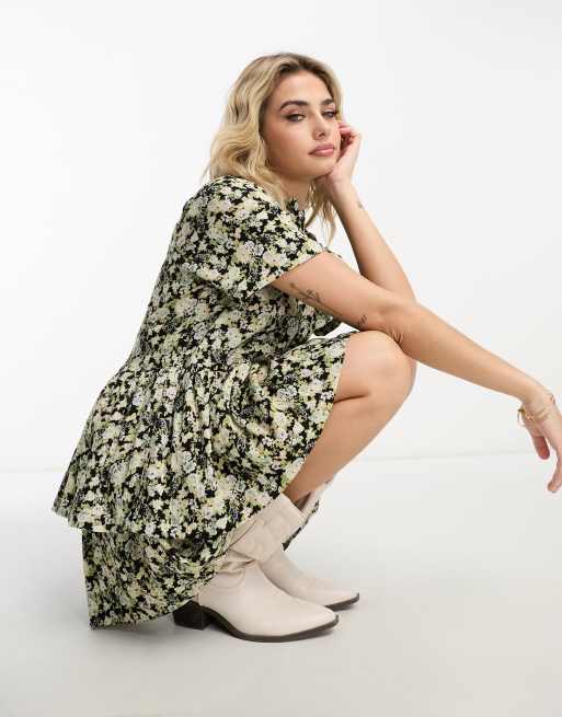 ASOS DESIGN button front tiered smock playsuit in grungy floral