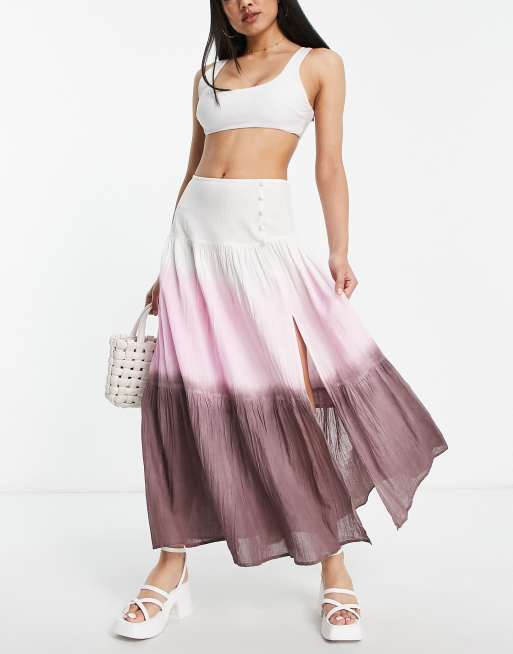 ASOS DESIGN button side floaty maxi skirt with high split in ombre