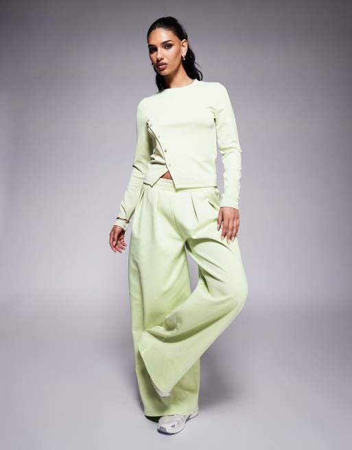 ASOS DESIGN button split hem long sleeve and trouser cupro top in green