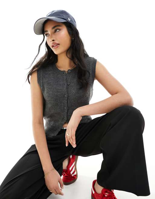 ASOS DESIGN button through fitted crew neck waistcoat in charcoal
