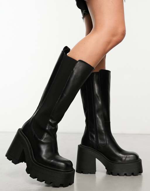 ASOS DESIGN Cabin premium leather heeled knee boots in black