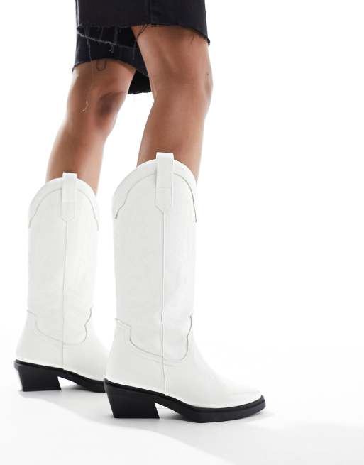 ASOS DESIGN Camden flat western knee boots in white