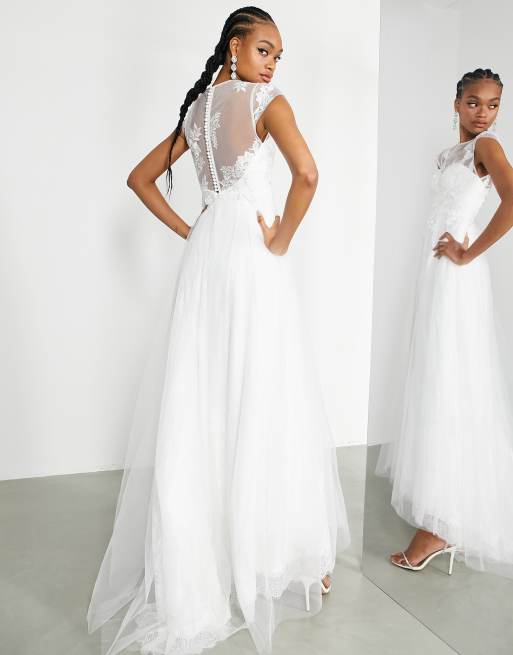 ASOS DESIGN Camille embroidered bodice wedding dress with lace underlay -