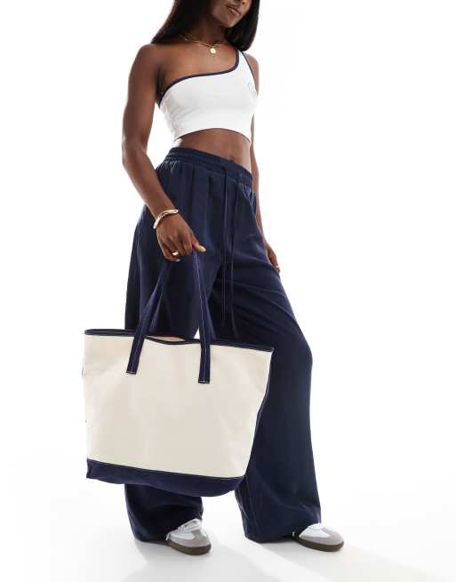 ASOS DESIGN canvas tote bag with contrast detail in navy blue