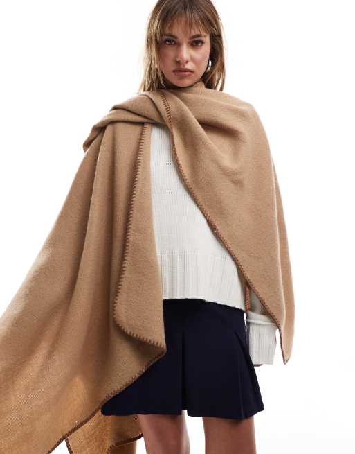 ASOS DESIGN cape with stab stitch detail in beige