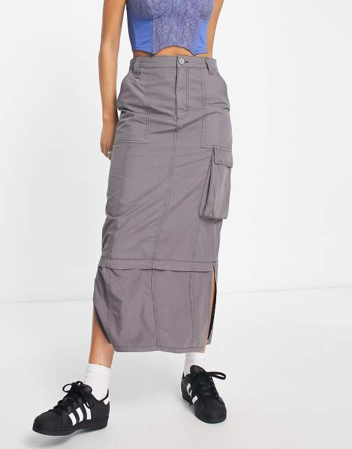 ASOS DESIGN cargo midi skirt in grey