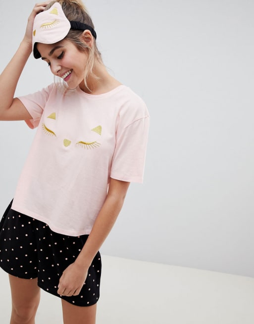 ASOS DESIGN Cat Eyes Short & Tee Pyjama Set and Eye Mask