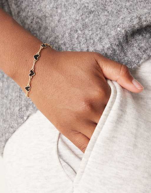 ASOS DESIGN chain bracelet with black enamel heart details in gold tone