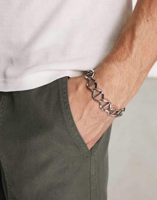 ASOS DESIGN chain bracelet with flat link detail in burnished silver tone