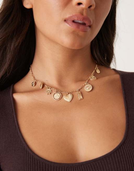 ASOS DESIGN chain necklace with small charms in gold tone