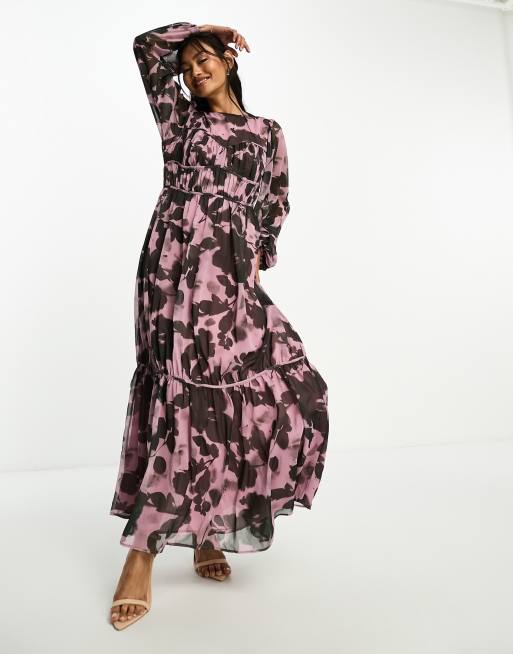 ASOS DESIGN channel waist maxi dress in black and purple print