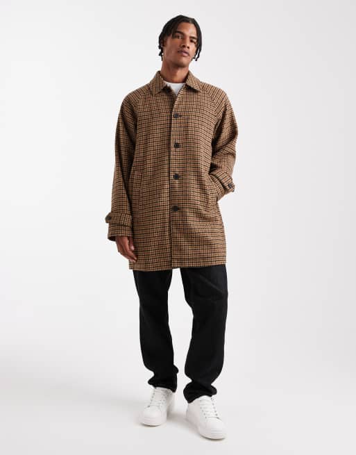 ASOS DESIGN check wool look carcoat in brown