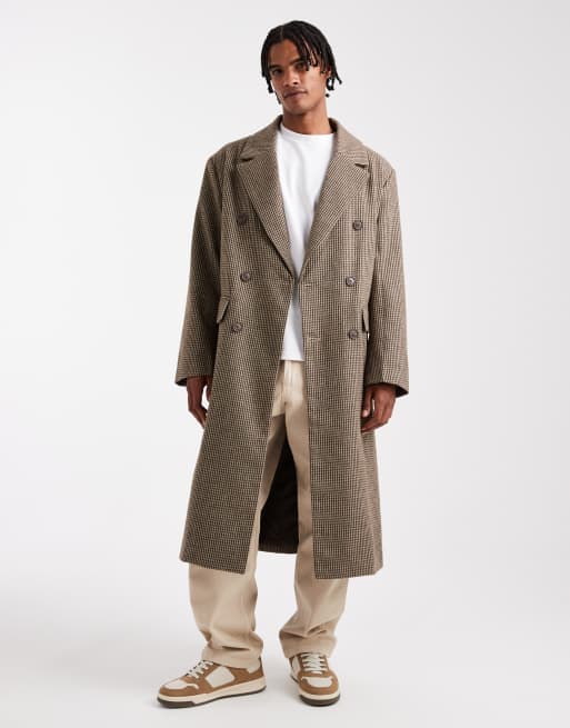 ASOS DESIGN check wool look oversized longline coat in brown