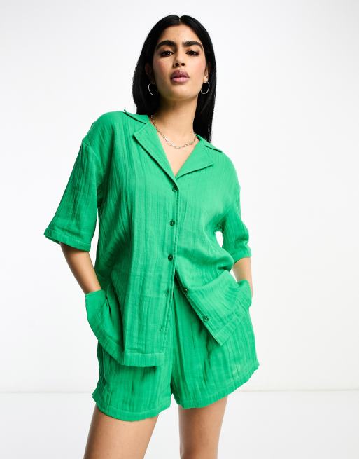 ASOS DESIGN cheesecloth bowling shirt in green co-ord