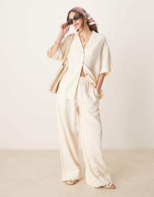 ASOS DESIGN cheesecloth pull on trousers with raw edge detail co-ord in buttermilk