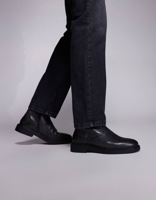 ASOS DESIGN chelsea boot in black distressed leather