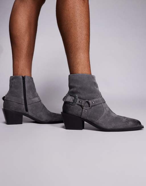 ASOS DESIGN chelsea boots in grey suede with buckle and cuban heel