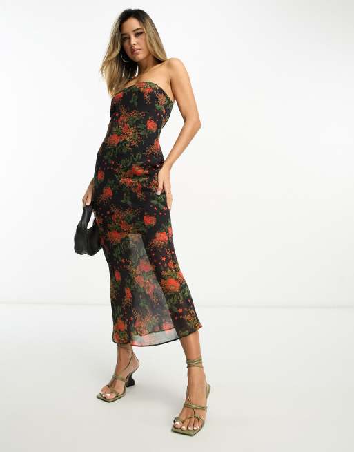 ASOS DESIGN chiffon bandeau midi dress in grunge floral