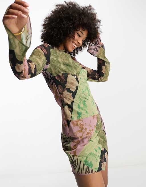 ASOS DESIGN chiffon fit and flare mini dress in mixed print