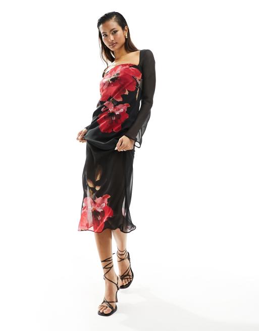 ASOS DESIGN chiffon midi dress with bolero sleeves in placement print