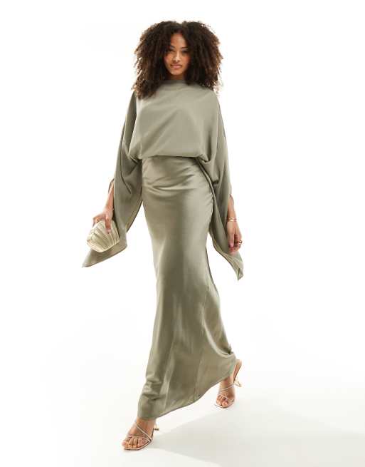 ASOS DESIGN chiffon overlay satin bias maxi dress in green