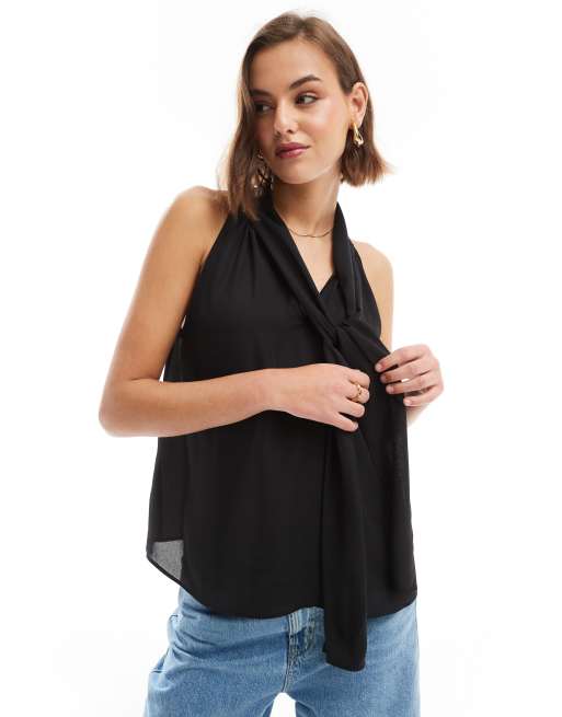 ASOS DESIGN chiffon pussybow blouse in black