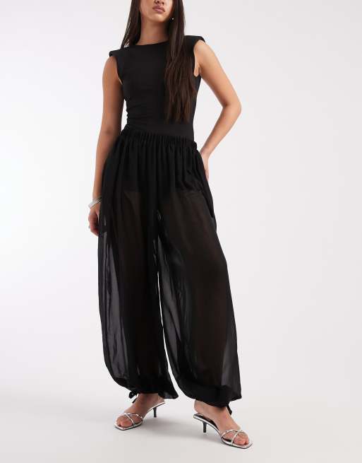 ASOS DESIGN chiffon sheer balloon trouser in black