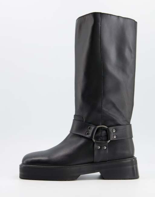 ASOS DESIGN Chilli premium leather harness knee boots in black