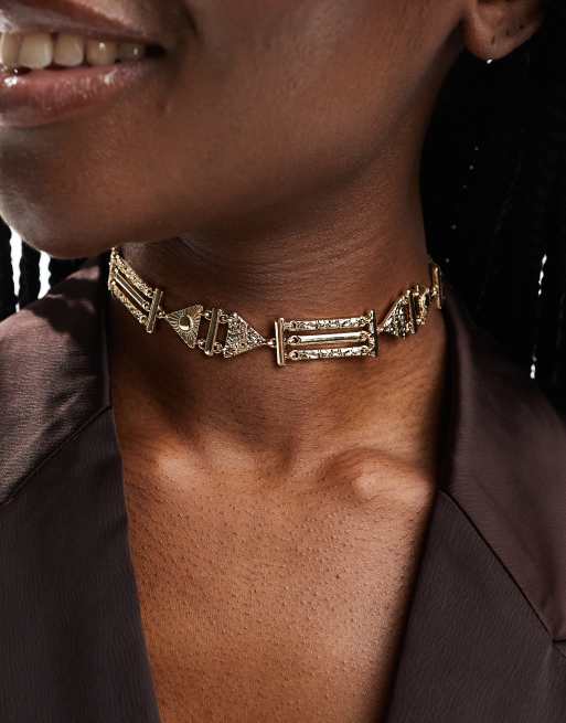 ASOS DESIGN choker necklace with abstract design in gold tone