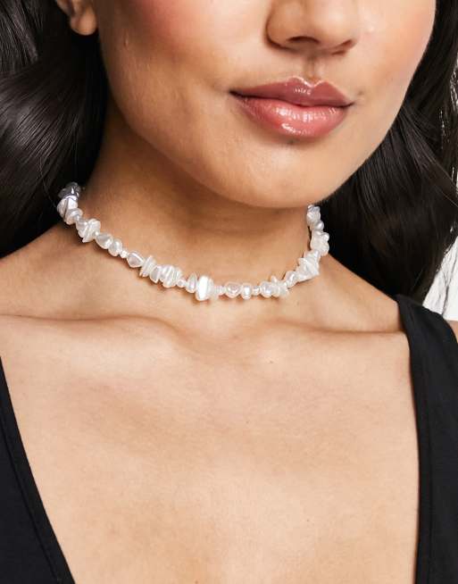 ASOS DESIGN choker necklace with faux chipping and pearl design