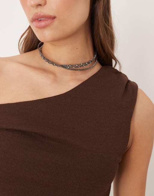 ASOS DESIGN choker necklace with triple row of faux crystals