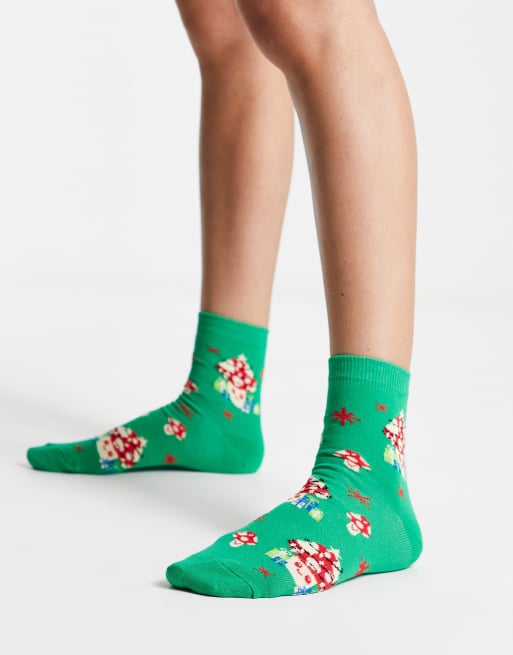 ASOS DESIGN Christmas ankle socks with mushroom design in green
