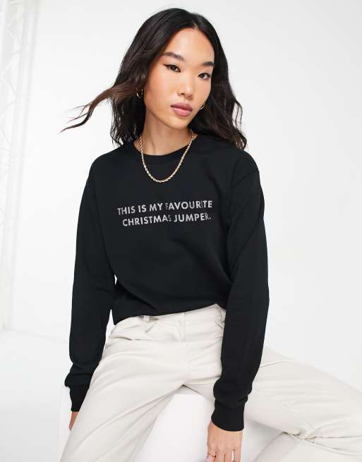 ASOS DESIGN Christmas sweatshirt with glitter favourite jumper print in black
