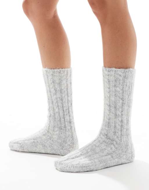 ASOS DESIGN chunky cable knit lounge socks in grey marl