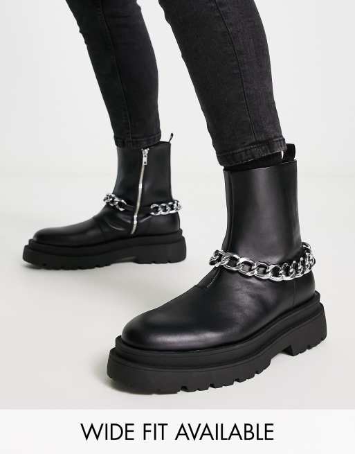 ASOS DESIGN chunky calf boot in black faux leather with silver chain