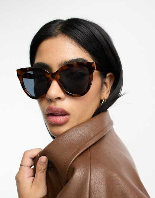 ASOS DESIGN chunky flare cat eye sunglasses in tort