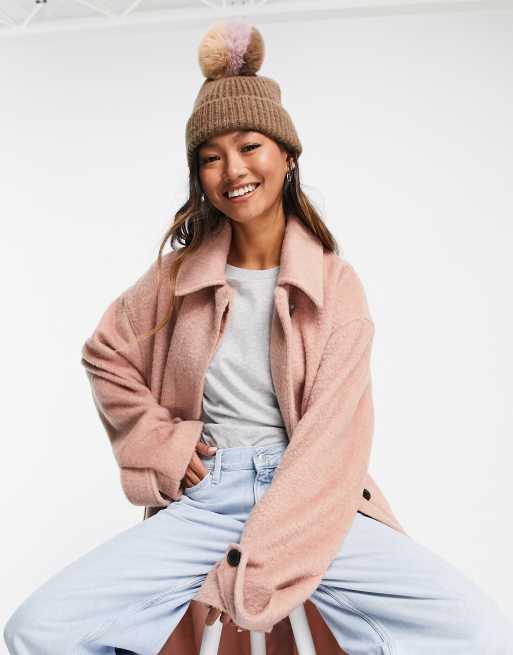 ASOS DESIGN chunky knit pom beanie in brown