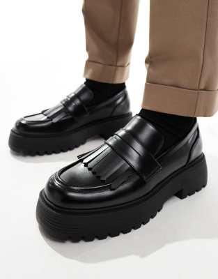 ASOS DESIGN chunky loafers in black with fringing