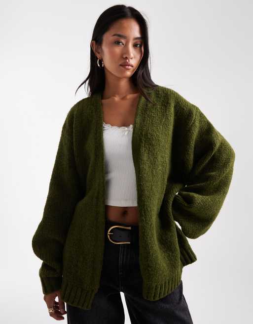 ASOS DESIGN chunky oversized edge to edge cardigan in olive