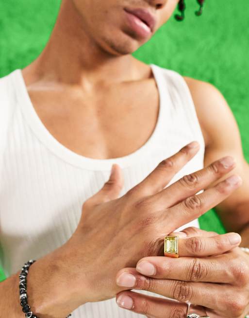 ASOS DESIGN chunky rectangle signet ring with yellow jewel