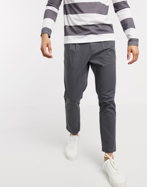 ASOS DESIGN cigarette chinos with pleats in charcoal