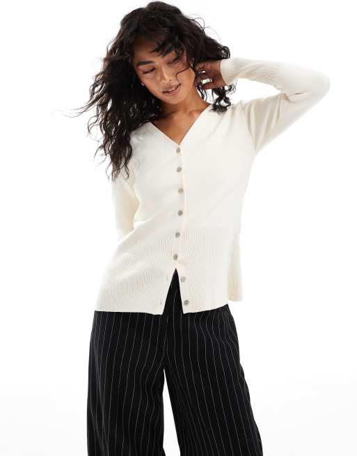 ASOS DESIGN cinch waist cardigan in ecru