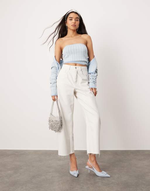 ASOS DESIGN cinched waist barrel leg jean in ecru